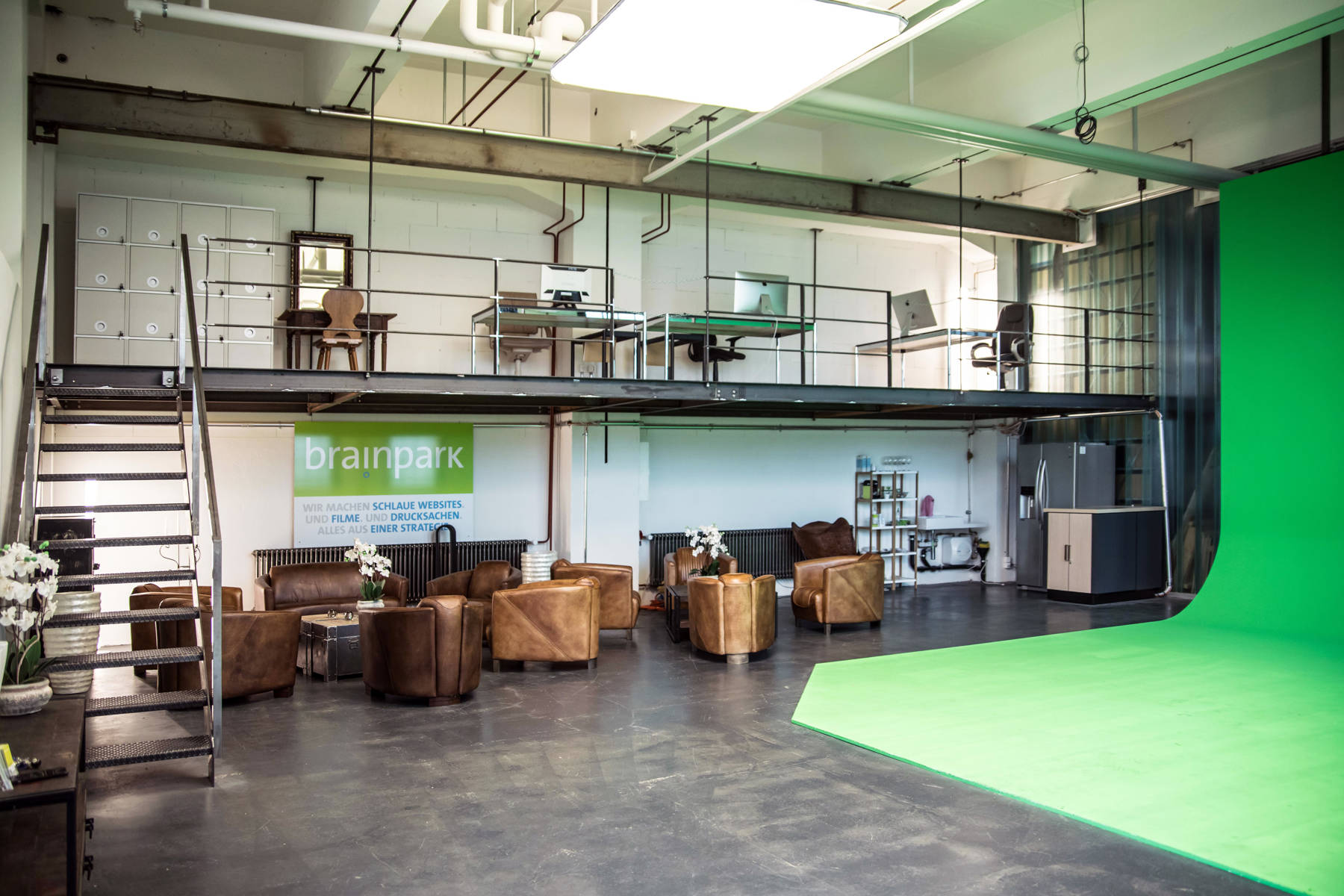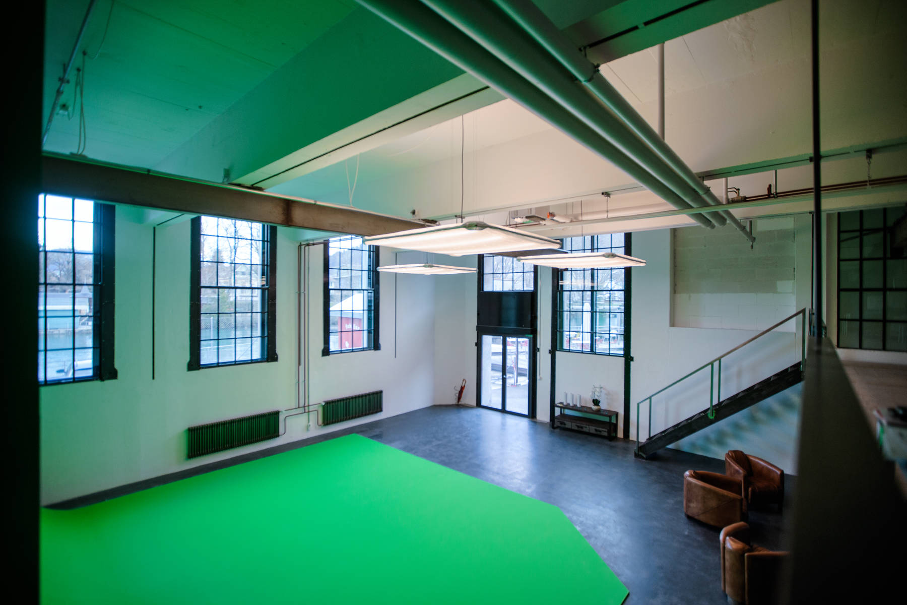 Das brainpark Film- und Fotostudio in Thun, direkt an der Aare gelegen, ist das grösste im Kanton Bern. Mit 6 m Höhe, 125 m² Fläche und 80 m² Greenscreenfläche bietet das Studio viel Raum, um professionell zu arbeiten – ideal für Gruppenaufnahmen und grosszügige Werbeideen.